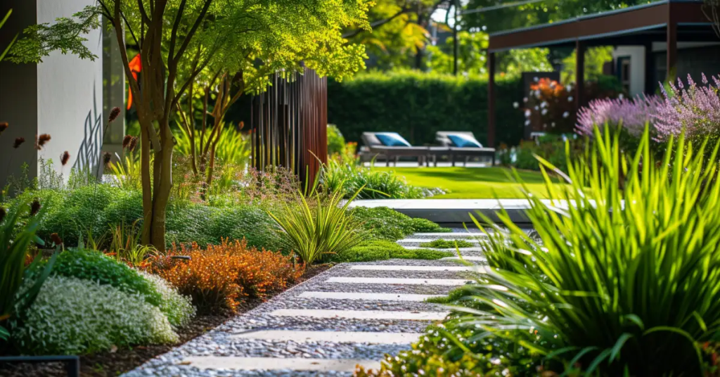 • Choose low-maintenance native plants that thrive in your climate, such as Kangaroo Paw or Grevillea.